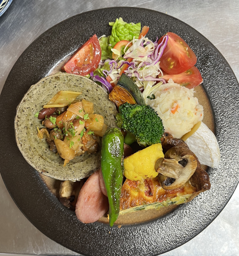 昼食は、一皿にキッシュや季節野菜のあれこれをのせたプレートランチです。